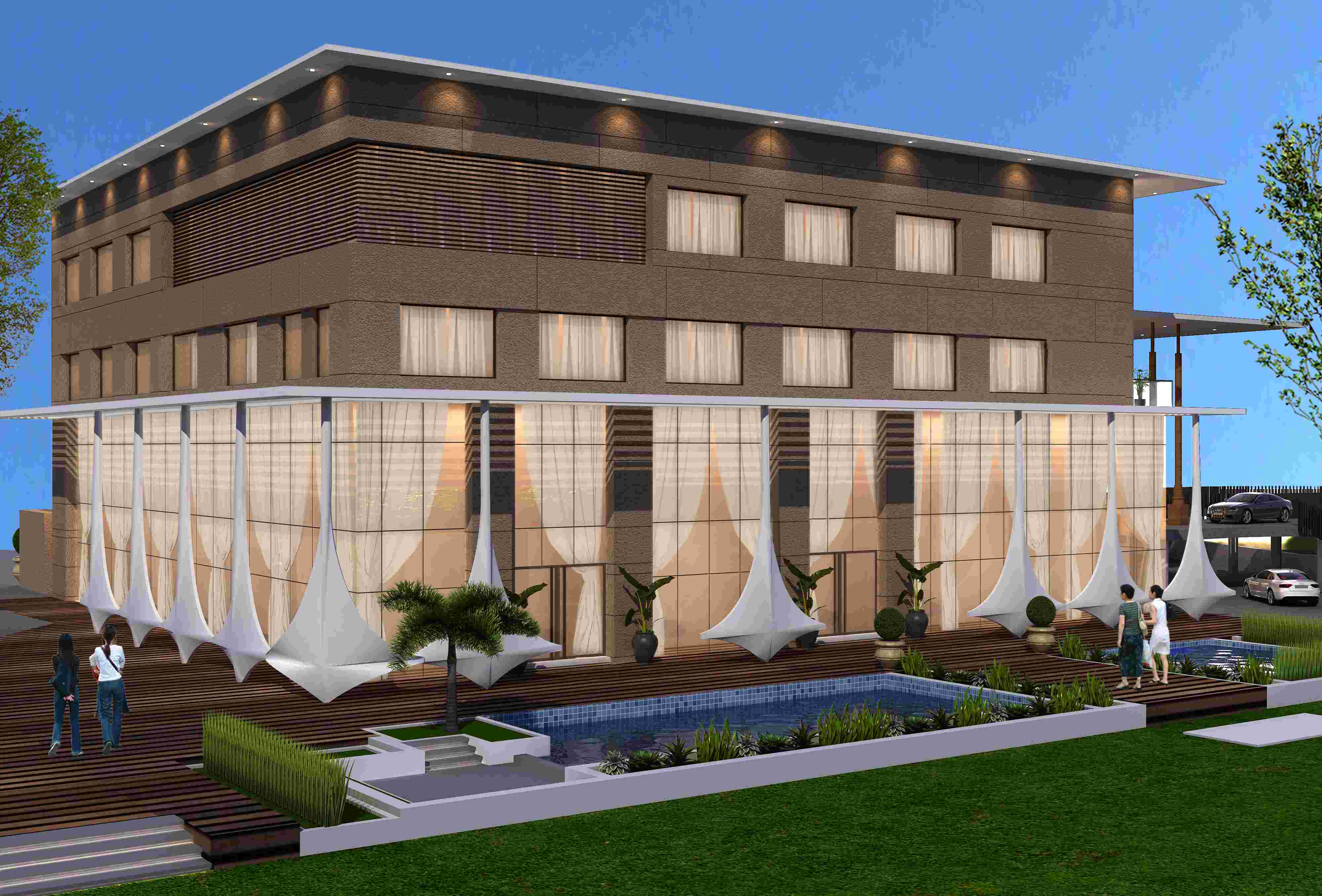 - Project Details : Premium rooms complemented by an elegant skylit seating area and expansive 14,000 sq. feet banquet facilities, all set within 3 acres of lush green open landscape.